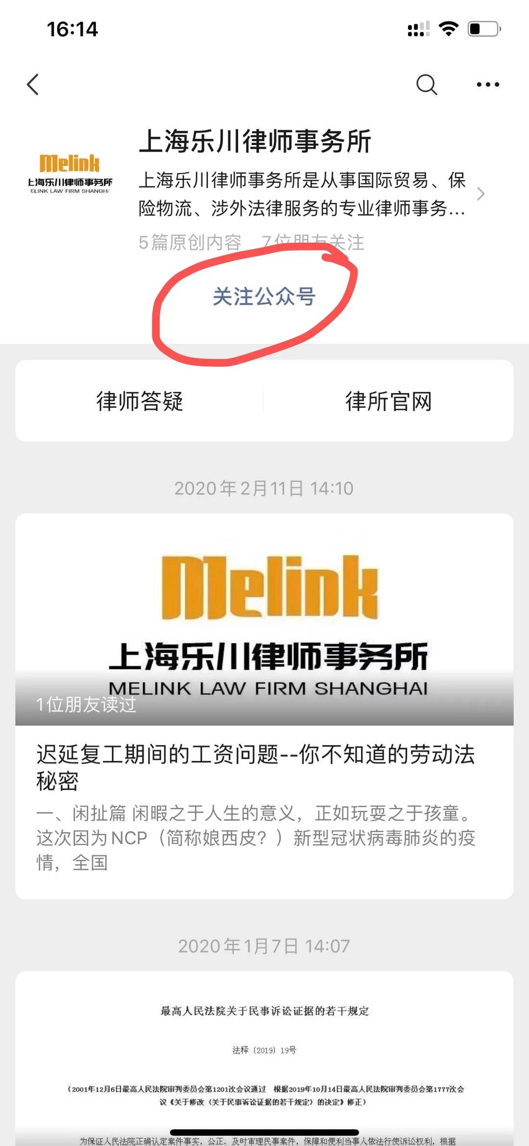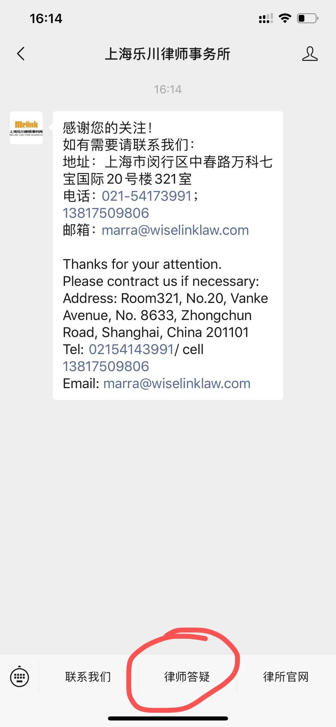 或者扫描下面的二维码,关注 “上海乐川律师事务所”