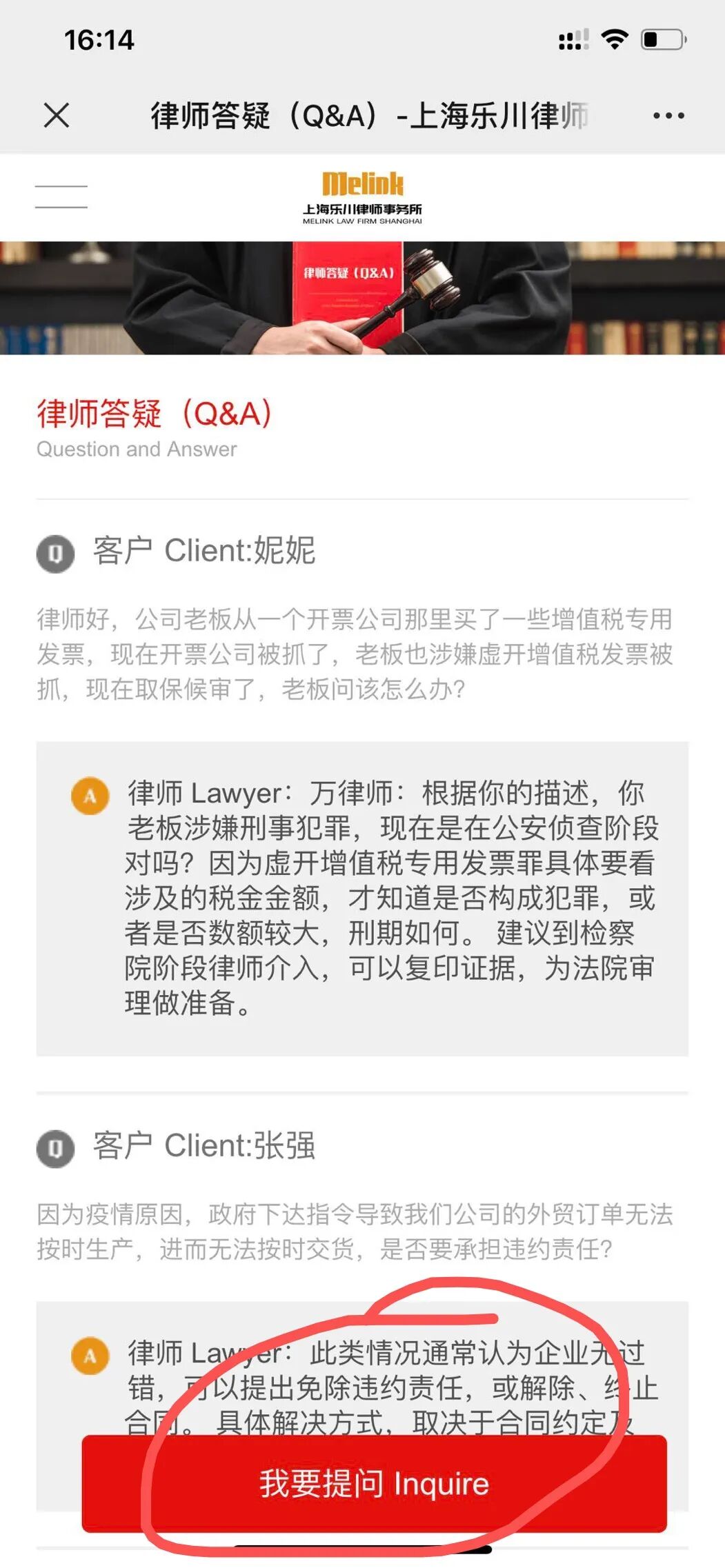 乐川所官网和公众号的“律师答疑(Q&A)”版块上线啦!